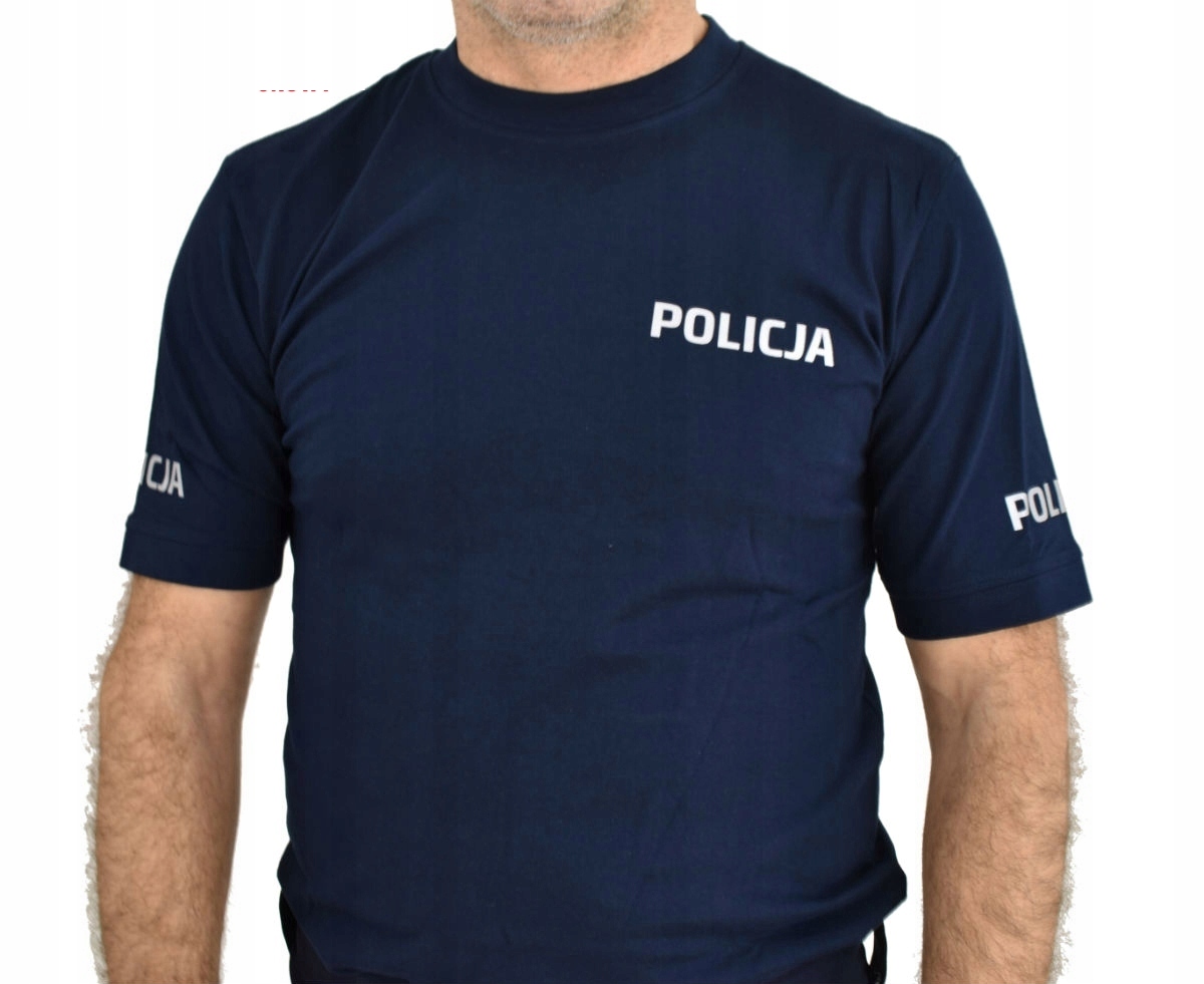 Темно-синя поліцейська футболка має світловідбиваючі написи POLICE на грудях, спині та рукавах.