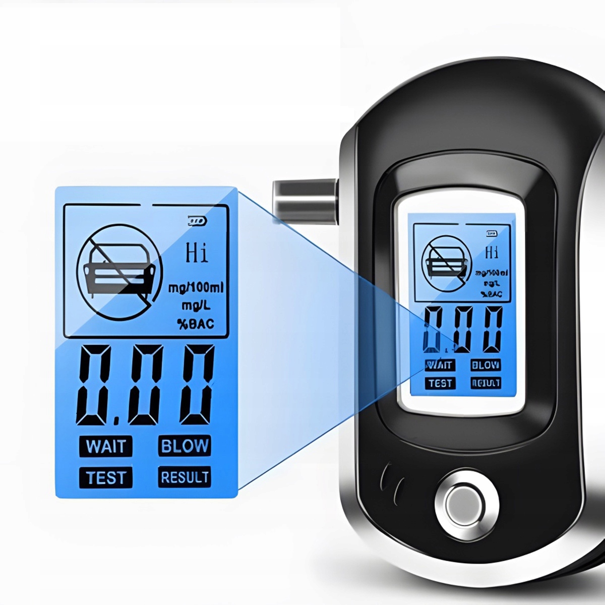 1. [Поліцейський прецизійний алкотестер] Алкотестер використовує професійну конструкцію алкотестера та високоточні напівпровідникові датчики для більш точного та швидкого вимірювання концентрації алкоголю в крові (BAC). Він має точність 99,1% і діапазон від 0,00% до 1,9% BAC (0,0-1,9 г/л). Зручний для читання РК-дисплей з підсвічуванням безпосередньо відображає результати тесту.