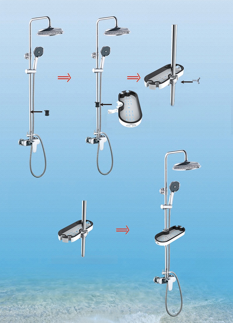 Полиця оснащена 3 різними кришками, що дозволяє адаптувати її до душових штанг різних розмірів. Ви можете легко відрегулювати полицю відповідно до своїх потреб. Кришки дозволяють встановити на стрижні діаметром: 22мм, 24мм, 25мм