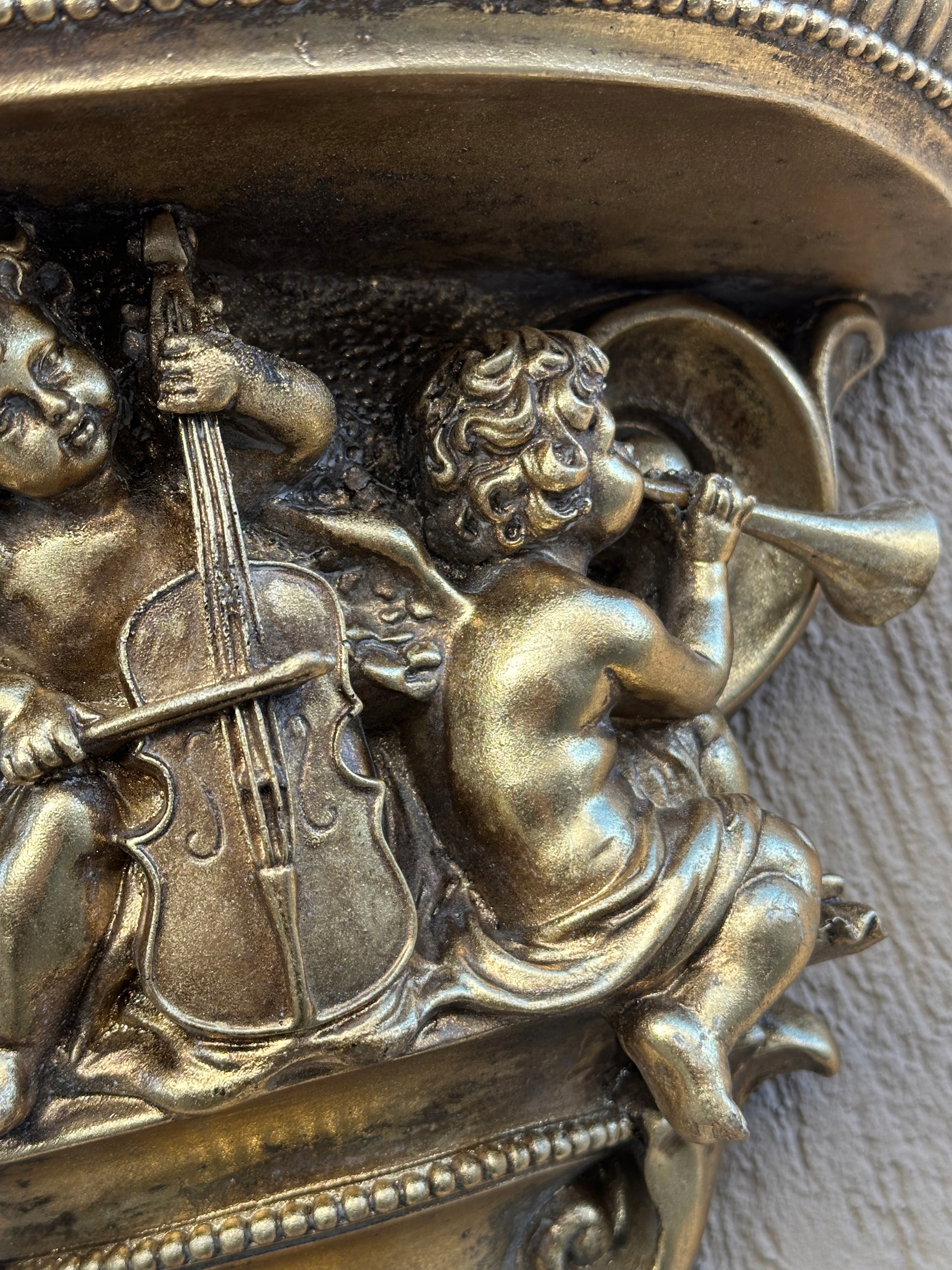 ПОЛИЧКА КОНСОЛЬНА З АНГЕЛАТАМИ З АЖУРНИМ ВИЗІРОНКОМ, ЗОЛОТА КОЛОНА
