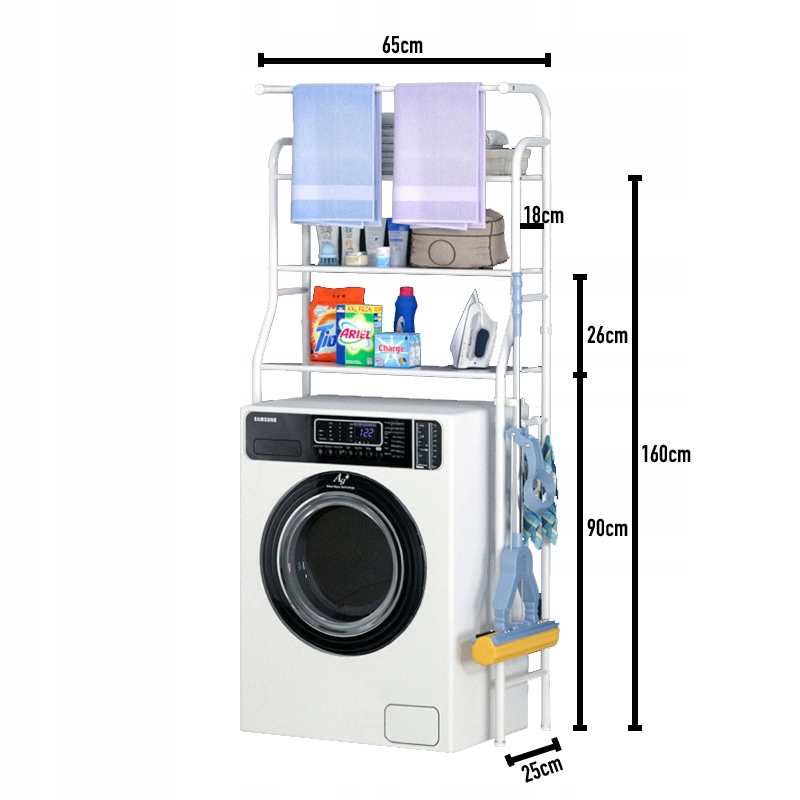3-ярусна полиця над пральною машиною стане відмінним рішенням для створення додаткового простору в маленькій ванній або пральні.