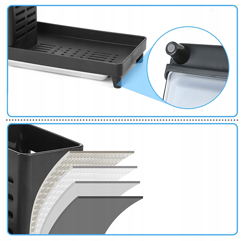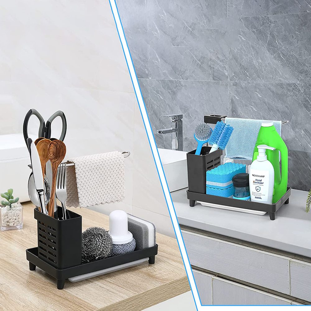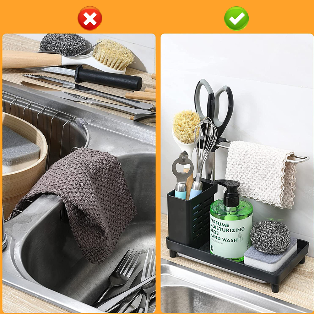 - Органайзер для раковини виготовлено з міцного пластику та нержавіючої сталі для тривалого терміну служби.