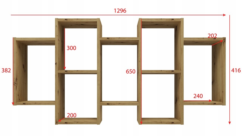 Матеріал: - стелаж з ламінованого меблевого щита товщиною 16 мм Розміри: Ширина: 129,5 см Висота: 65 см Глибина: 20 см Використання: Очистіть поверхню меблів м’якою ганчіркою. Уникайте використання сильних хімікатів. В упаковці: Інструкція з монтажу з усіма необхідними комплектуючими. Меблі упаковані на заводі для самостійної збірки. Решту детальних розмірів можна знайти нижче на вкладці «Файли» у формі електронної таблиці.