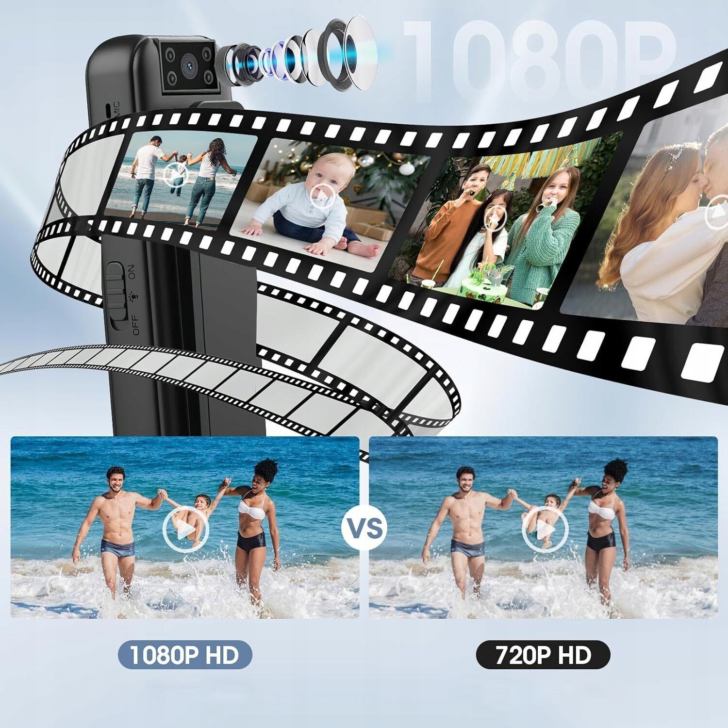 ✨【Міні-камера з поворотом на 180 градусів】 Відеореєстратор можна обертати вперед, назад, вгору тощо, його можна використовувати та записувати під будь-яким кутом у межах 180 градусів.