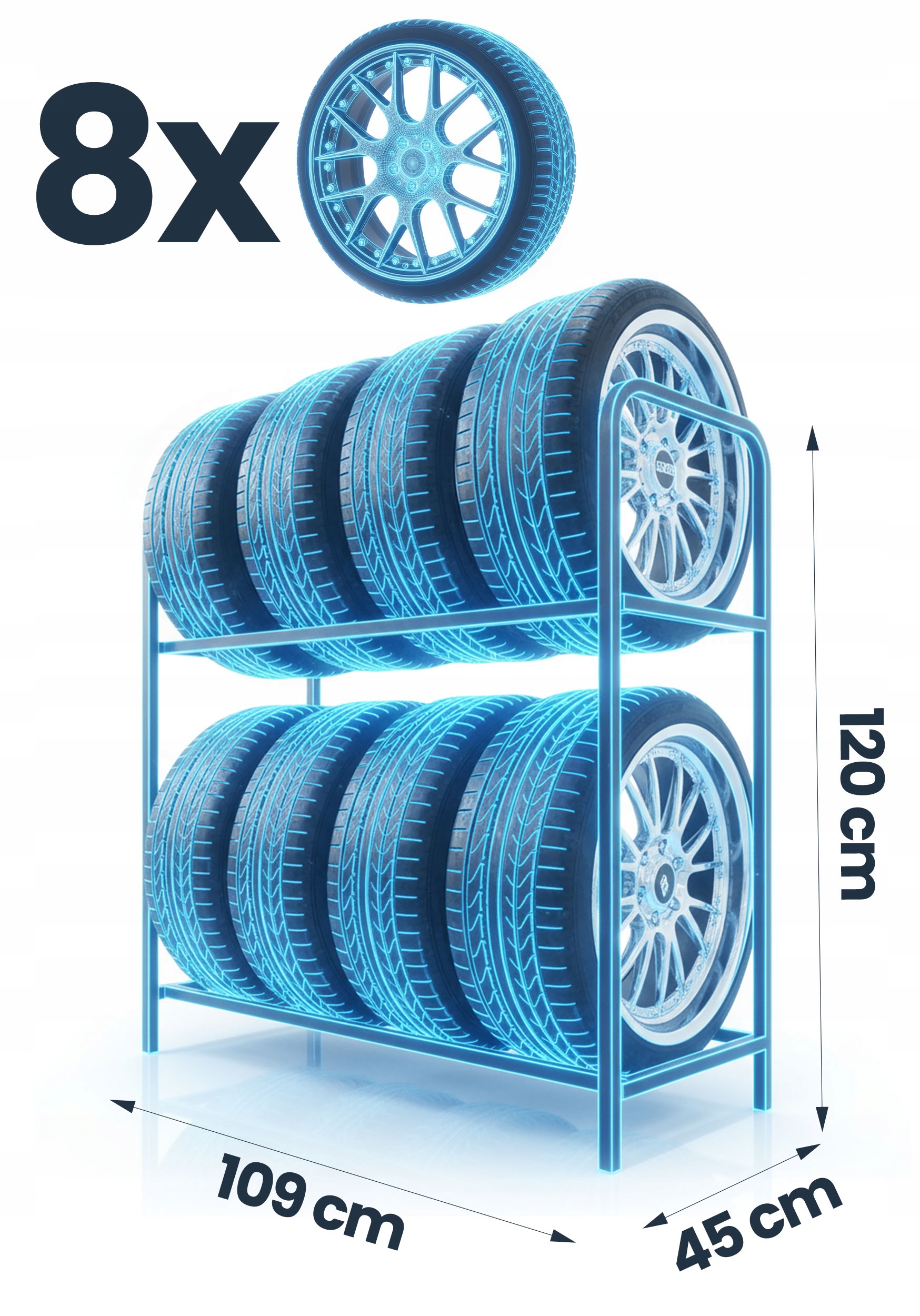 ✅ Економія місця - компактний стелаж для шин дозволяє безладно зберігати до 8 шин.