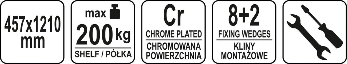 Полиця розміром 457x1210мм виготовлена з хромованої сталі.