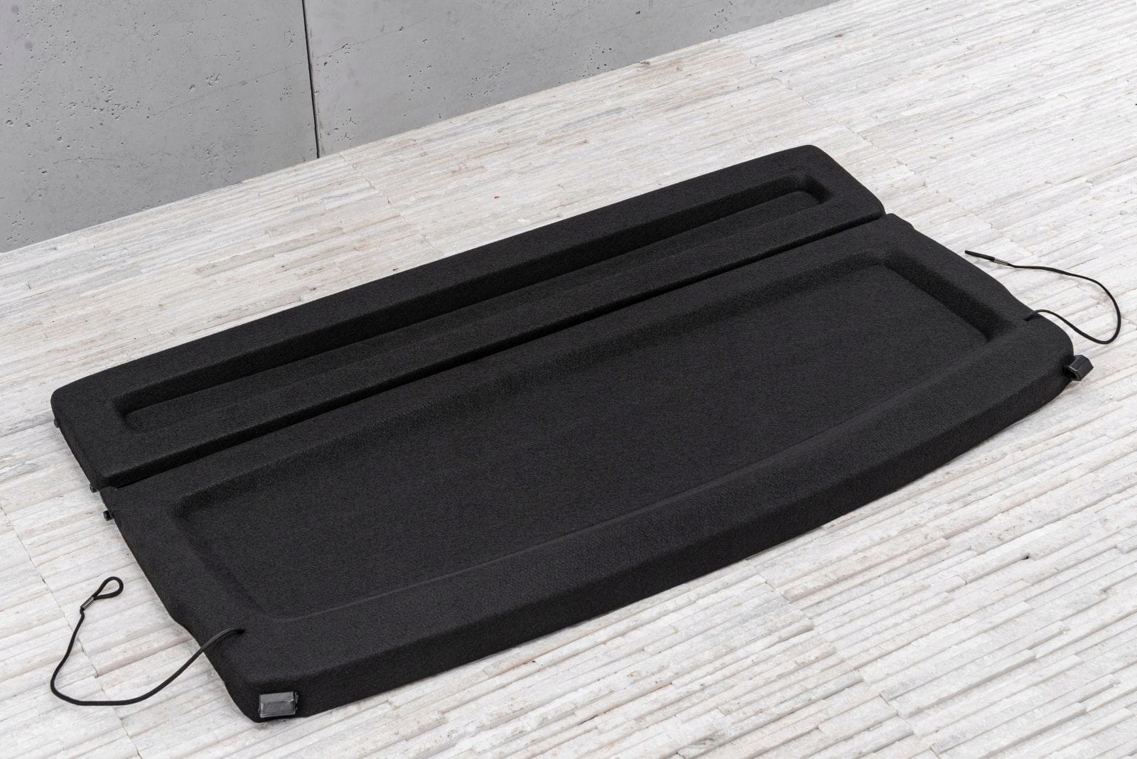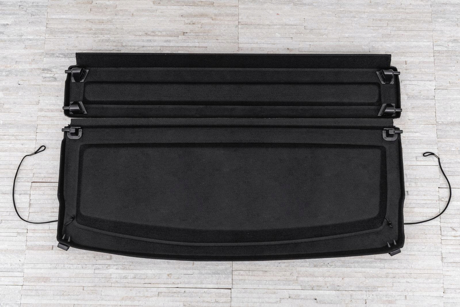 Полиця в багажник чорного кольору присвячена BMW X1 (F48) 2015-2022 р.в. Підходить лише для версій із регульованим заднім сидінням.