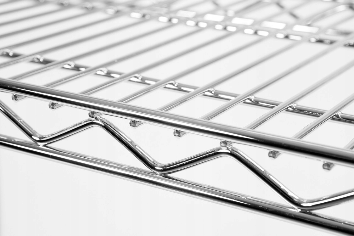 Хромована поверхня гарантує захист від корозії та експлуатаційних пошкоджень, а дротяна структура забезпечує виробам ідеальну вентиляцію.