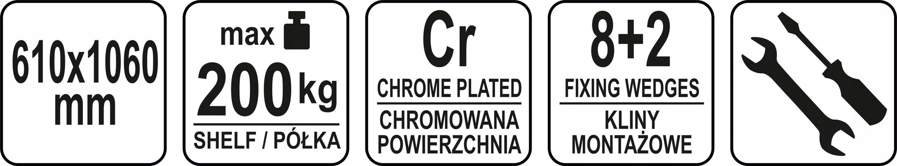 Полиця розміром 610х1060мм, виготовлена з хромованої сталі.