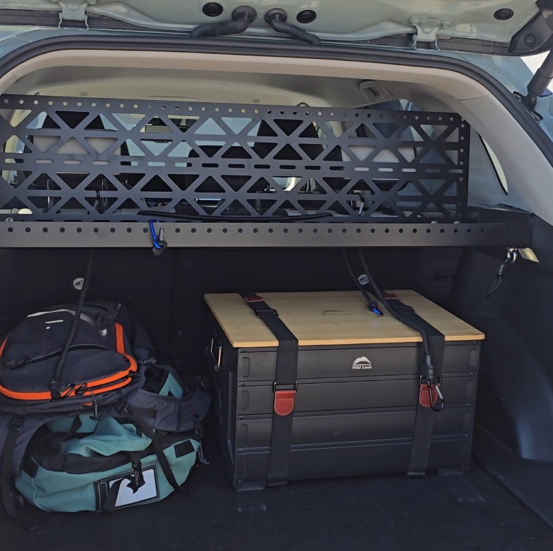 полиця присвячена поколінню Toyota Rav4 5, що виробляється з 2020 по 2025 рр. Включно. Установка полиці не потребує свердління. полиця встановлена в серійних отворах замість сліпих сліпих роликів, надзвичайно просто та інтуїтивно. Ми отримуємо багато додаткового місця для зберігання.