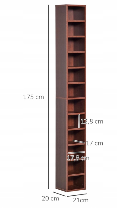 Тип кімнати: Вітальня Кількість полиць: 12 Особливості: Великий простір для зберігання, 12 рівнів, Міцний, Захист від перекидання, Універсальний Розміри продукту: Д x Ш x В: 20 см, Г x Ш x В: 21 см, Ш x В: 175 см Стиль: Сучасне покриття: Меламін Бренд: HOMCOM Інструкції з догляду: Протирайте вологою тканиною Розміри: 21 x 20 x 175 см. Максимальне навантаження: 15 кг