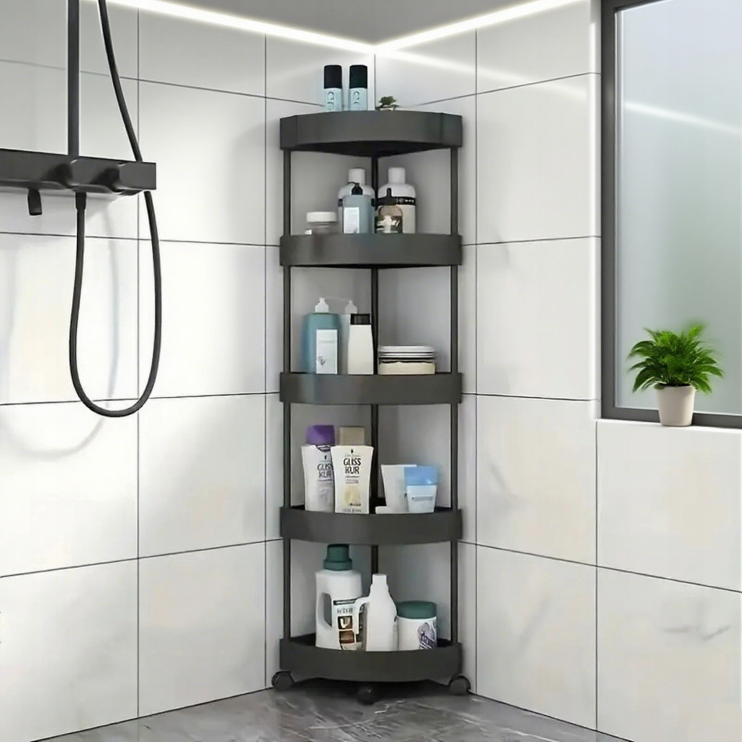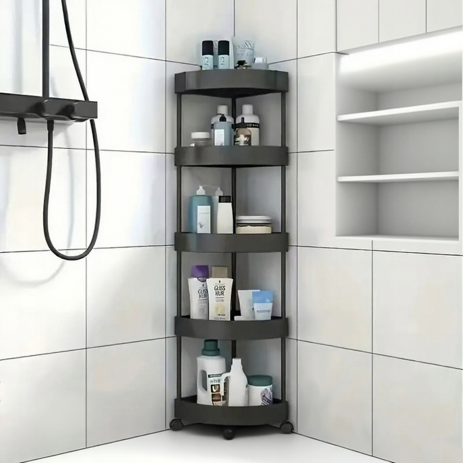 ➤ Просте збирання: Кутова полиця для душу легко збирається та має 5 полиць. Багатошарове встановлення можливе за запитом, що забезпечує легкий доступ до посуду для купання.