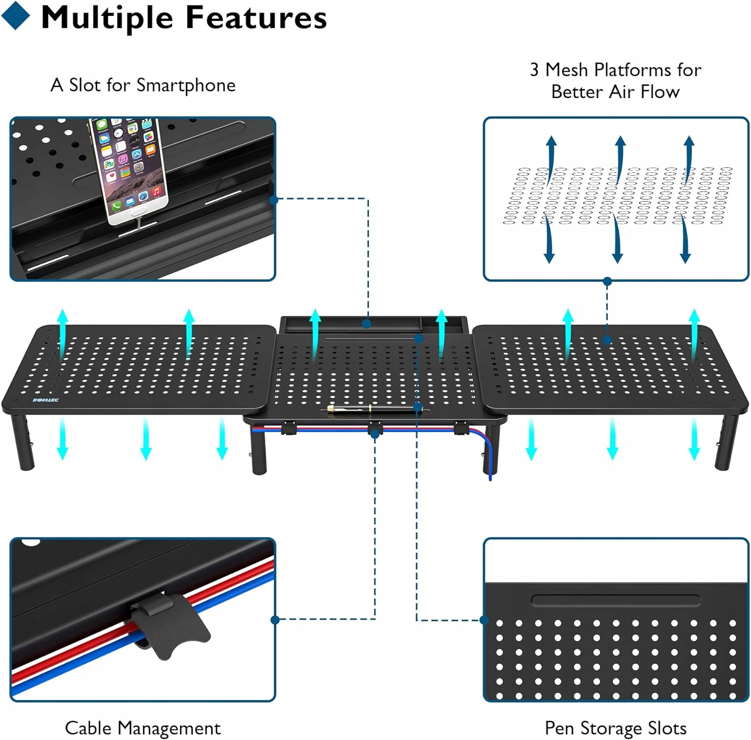 - Дуже легко встановити: наша стійка комп'ютерний монітор поставляється з 3 сітчастими платформами з отворами та 8 ніжками. Легко встановити за 3 хвилини, прикрутивши 8 ніжок до платформ, з’єднавши три блоки, і він готовий до використання! Інструменти не потрібні.