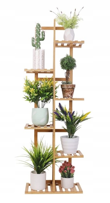 Збагатіть свій інтер'єр бамбуковою полицею. Ця багаторівнева підставка не тільки практична, але і стильна, тому ідеально впишеться в будь-який інтер'єр. Розрахований на розміщення до 7 рослин у горщиках, він ідеально підходить для малих і великих приміщень. 🌿✨