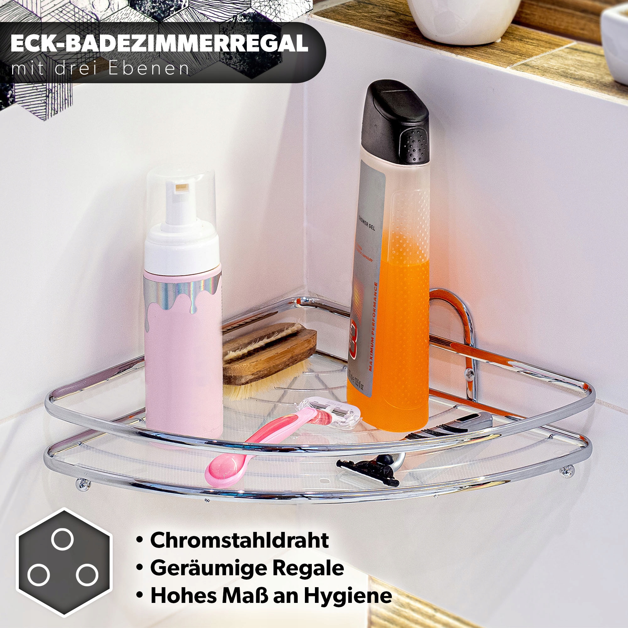 Хромовану кутову полицю можна встановити окремо або в комплекті з іншими.