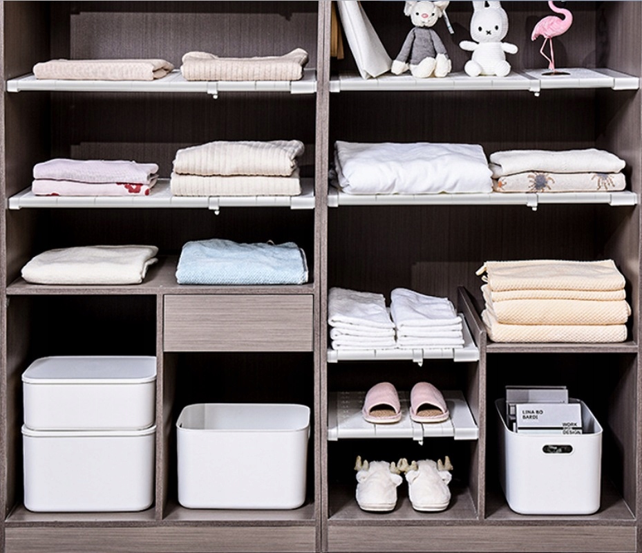 Телескопічна полиця для зберігання дуже зручна в повсякденному житті, вони висуваються в діапазоні 90-160 см. Така полиця дозволяє максимально використовувати вільний простір у вашій квартирі.