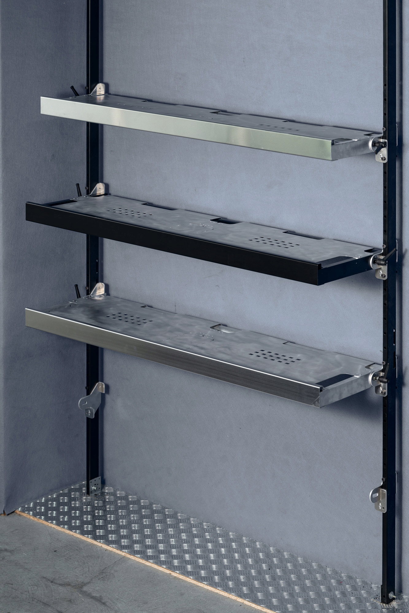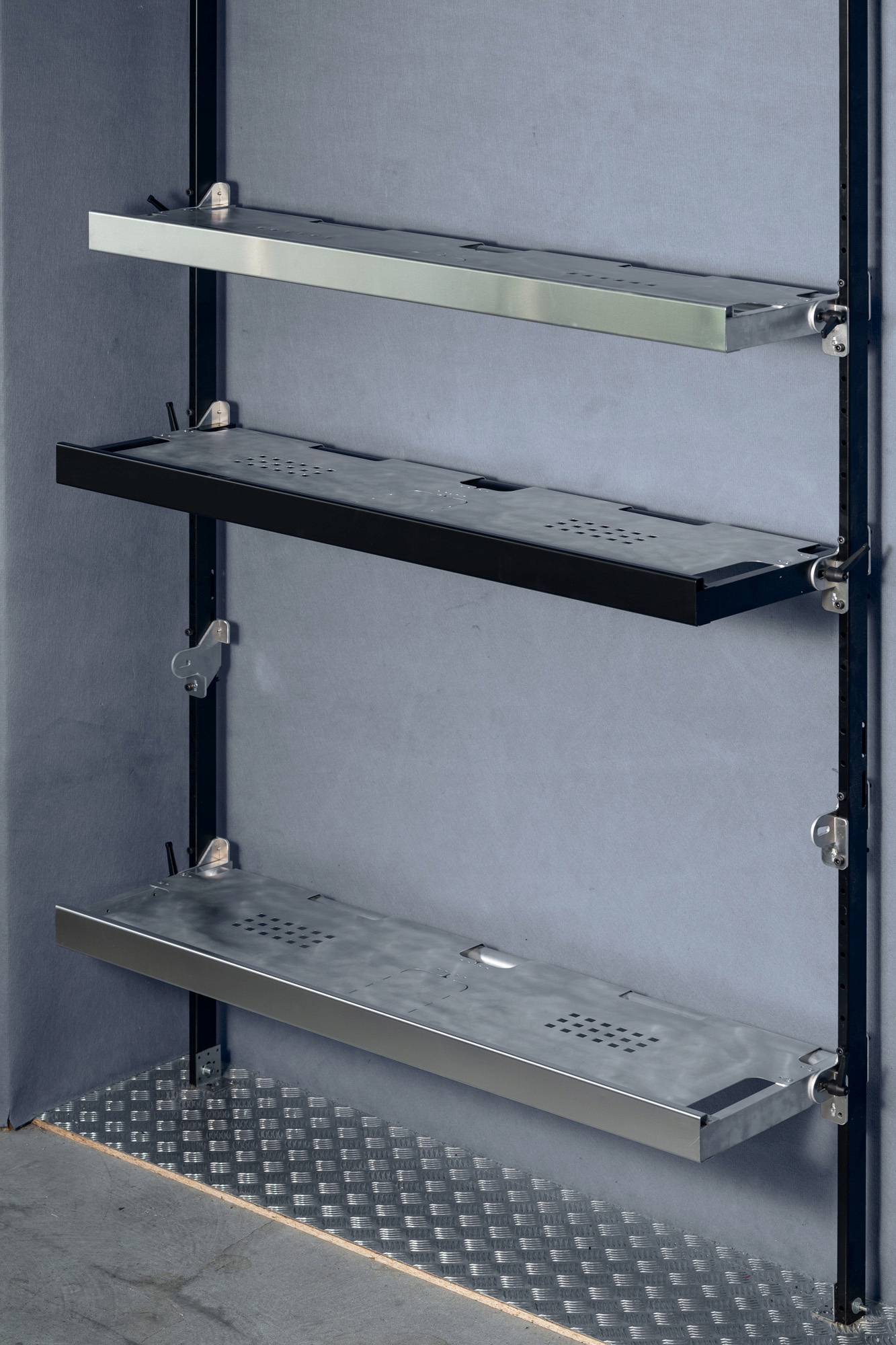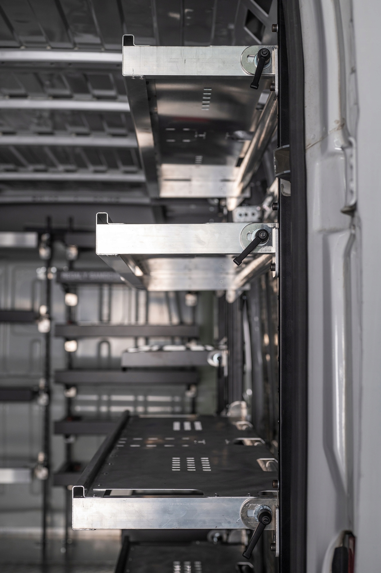 Після консультації з продавцем можлива БУДЬ-ЯКА конфігурація полиці - полиця може містити будь-яку кількість полиць різного типу (в залежності від індивідуальних потреб). Полиці є модульними, тому їх можна адаптувати до будь-якої довжини та висоти вантажного відділення автомобіля.
