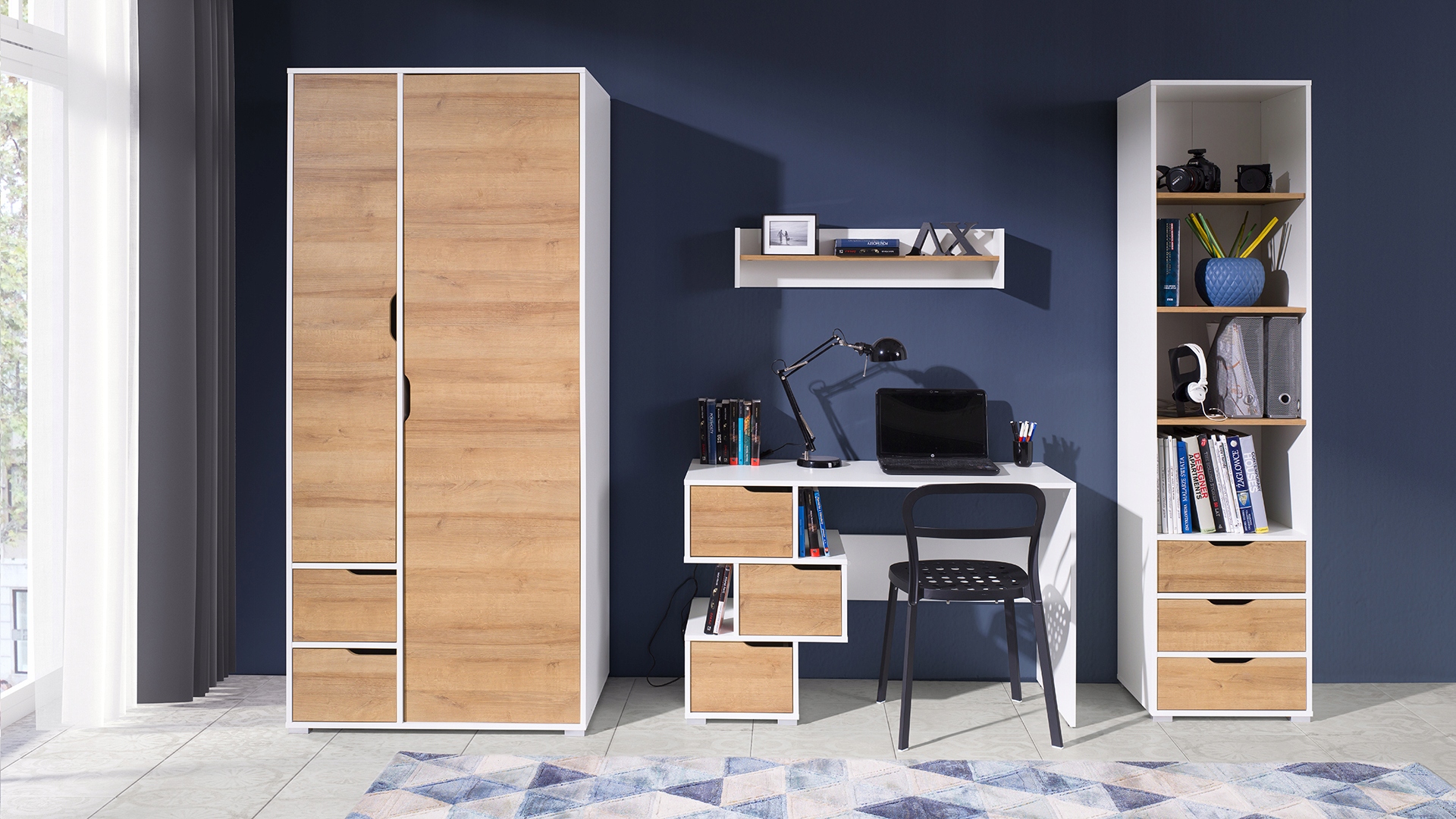 Полиця Iwa 90 см білий / золотистий дуб