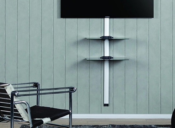 Він оснащений алюмінієвою настінною планкою з системою приховування кабелю, завдяки якій ви можете прокласти кабелі до вашого обладнання непомітним способом, зберігаючи повну естетику кімнати.
