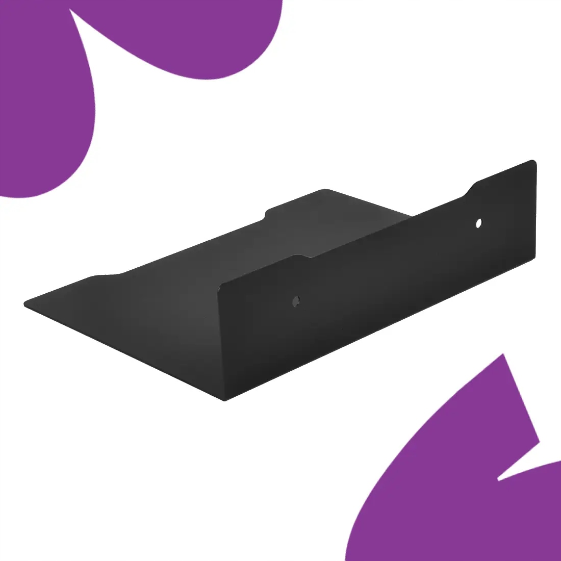Полиця кріпиться до стіни двома гвинтами. Найкраще використовувати шурупи Ø4–5 мм із розширювальними дюбелями відповідно до типу стіни.