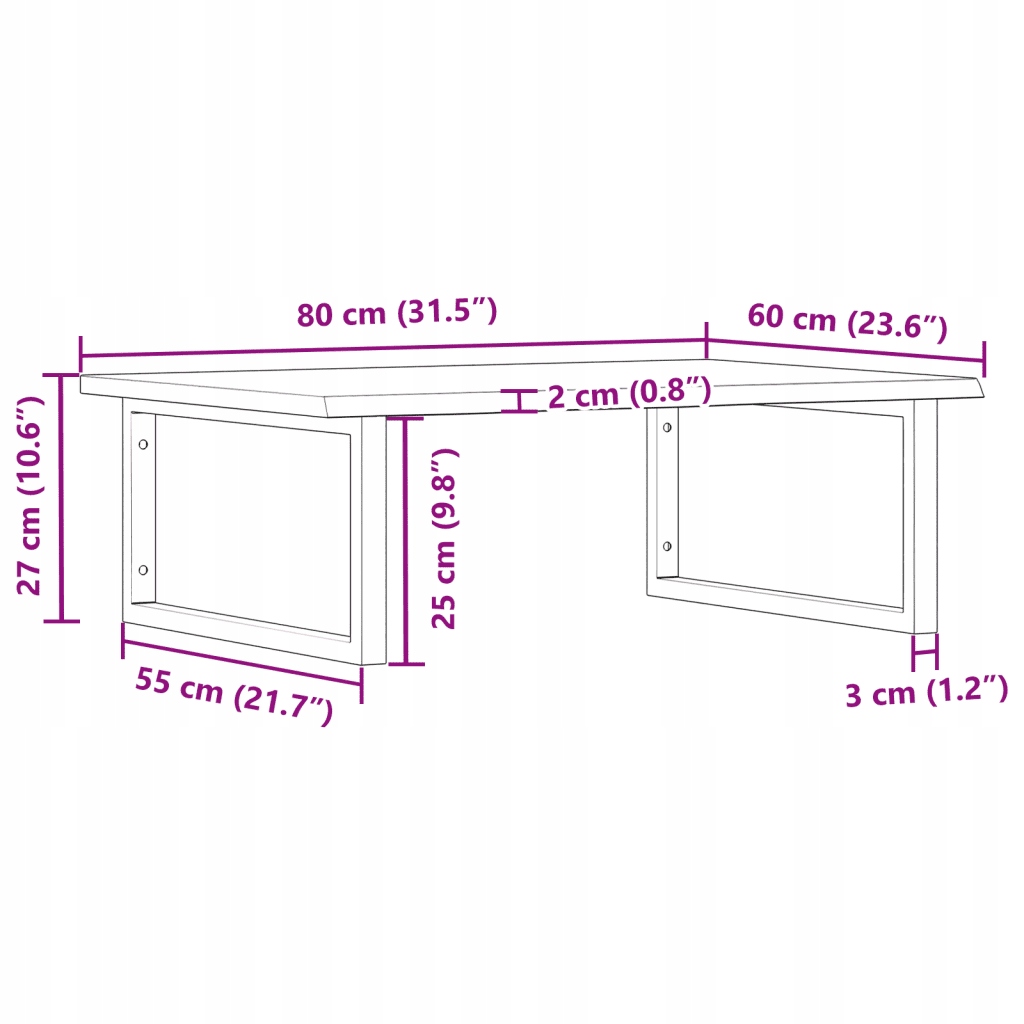 - Розмір кронштейна стільниці: 25 х 55 см (ширина х довжина)