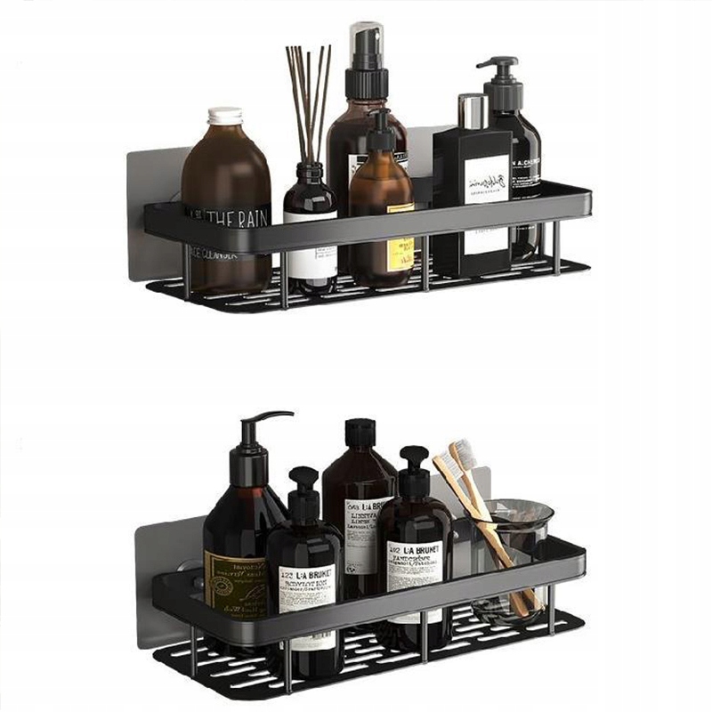 Душова полиця, набір з 2 душових кошиків, душова полиця, без свердління, полиця для ванної кімнати, самоклеюча або перфорована, душовий органайзер з 4 самоклеючими поверхнями, просторовий алюміній, нержавіюча сталь, чорний 31,5x14x5 см