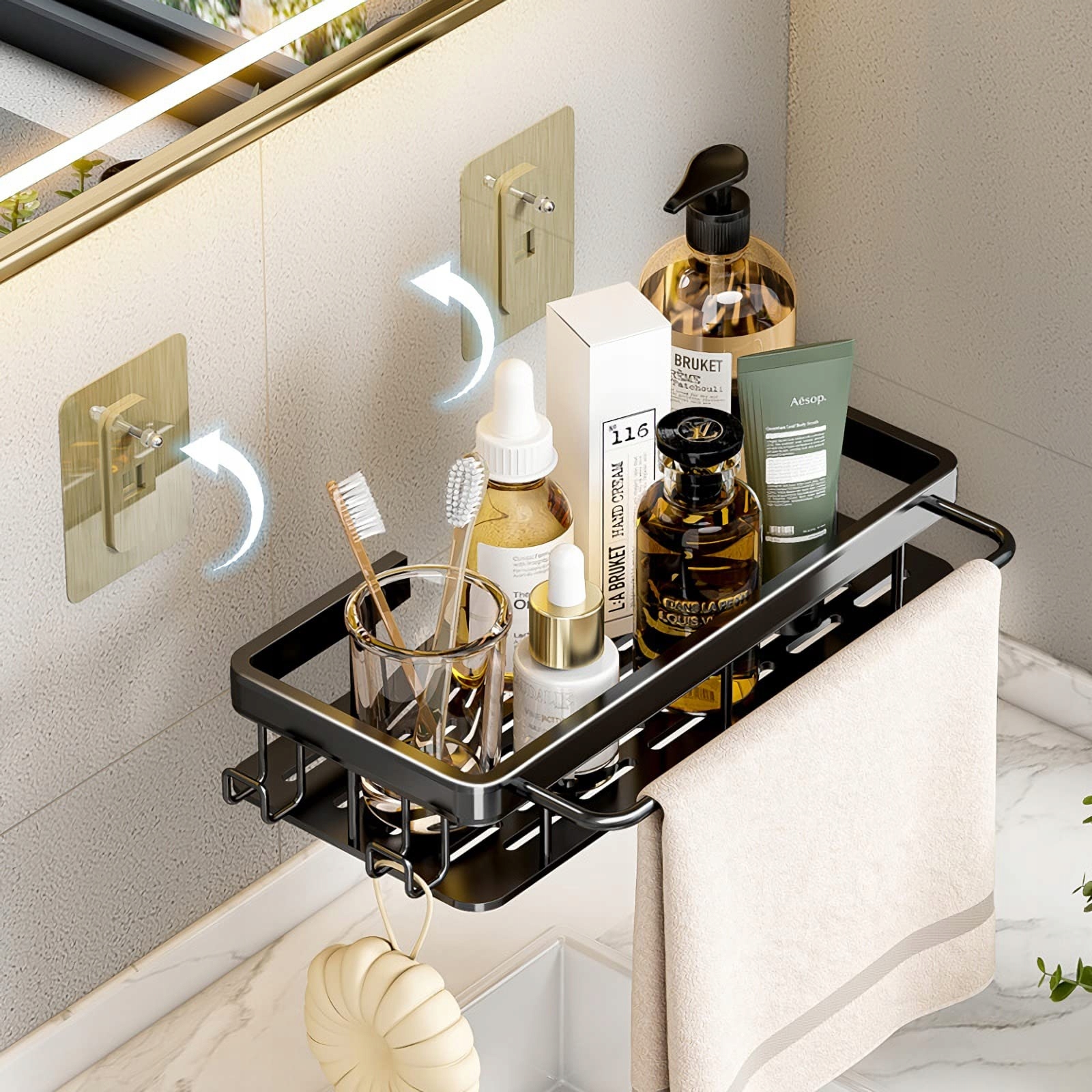 Просте встановлення: настінну полицю для душу можна прикріпити за допомогою професійного клею без свердління, що не пошкоджує стіну. Може бути легко встановлений будь-ким. При правильній установці він може витримати 10 кг. (Деякі стіни не підходять для установки без свердління, будь ласка, виберіть установку свердління).