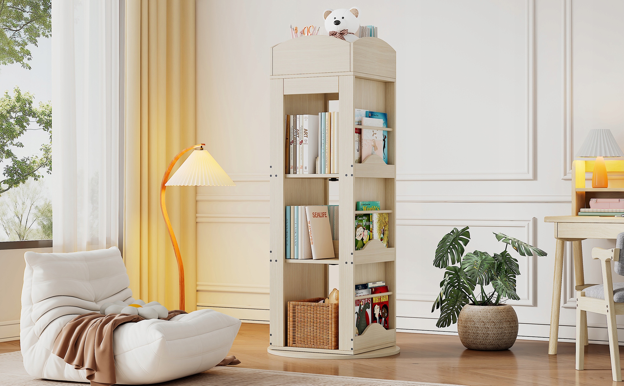Поворотна книжкова полиця, стояча полиця, полиця для книжок із картинками, що обертається на 360 градусів, полиця для зберігання дітей і дорослих, багатофункціональна книжкова полиця (4 полиці, 142×63×63 см)