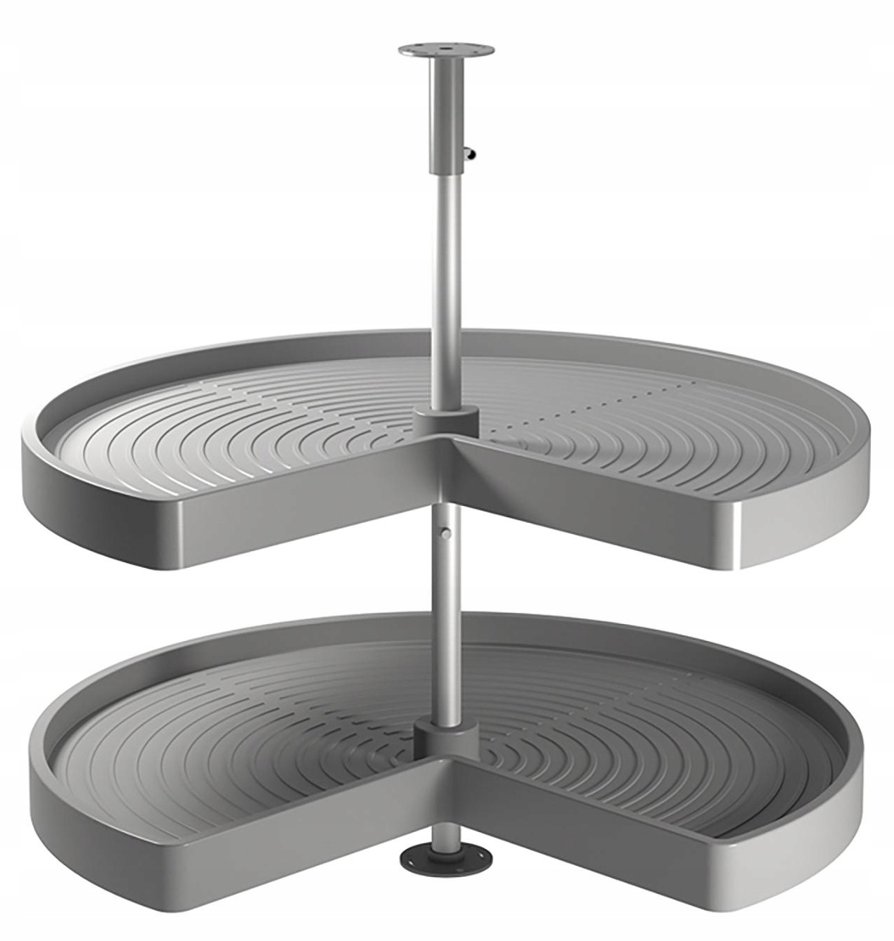 Трикомпонентні L-подібні поворотні лотки, призначені для використання простору в кутах кухні. Легко збирається та регулюється під різну висоту модуля. Система складається з 2 лотків і монтажних аксесуарів, виготовлених з придатного для переробки антистатичного пластику, високостійкого до ударів і ультрафіолетових променів, і центральної планки з матового анодованого алюмінію. Їх вантажопідйомність 20 кг на лоток.