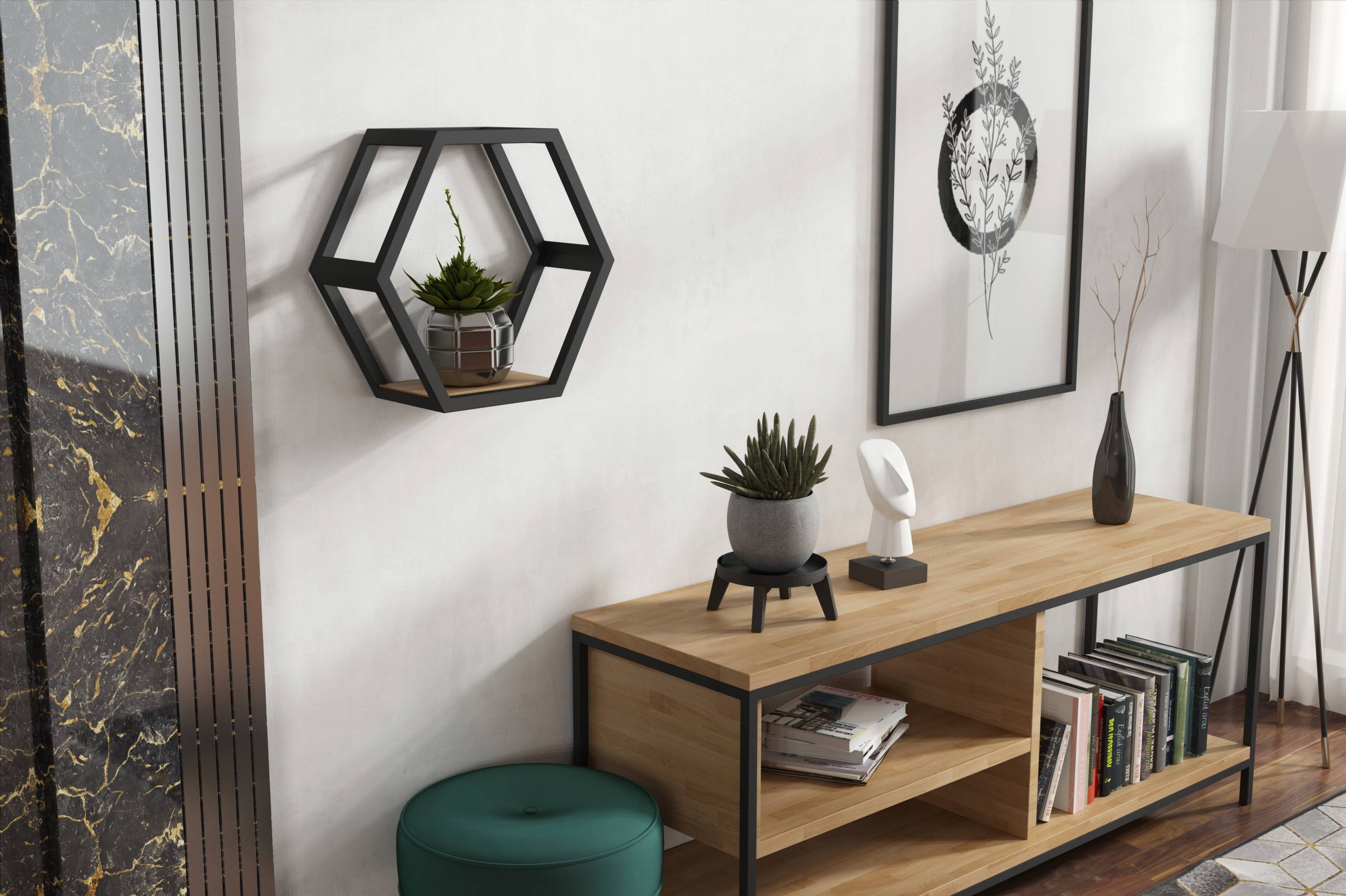 Промислова полиця лофт у формі соти.