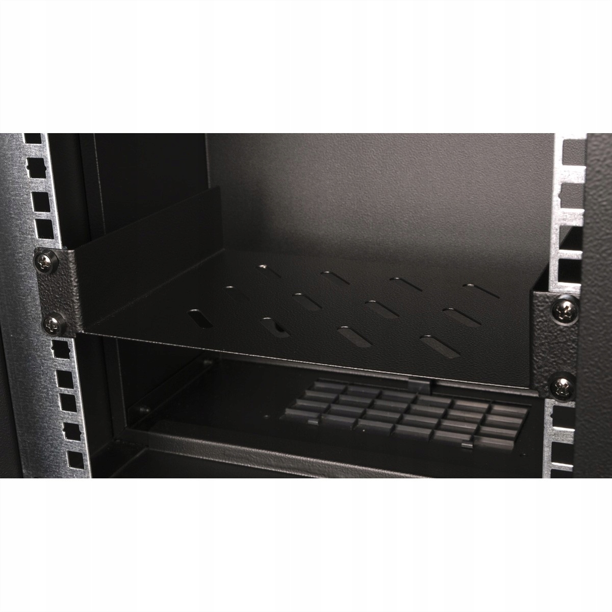 Полиці ROLINE 10" виготовлені з перфорованого листового металу та легко монтуються на передні профілі 10". Монтажний матеріал входить в комплект поставки. Полиці ROLINE 10" використовуються для безпечного зберігання компонентів, які не можна встановити безпосередньо в корпус 10".