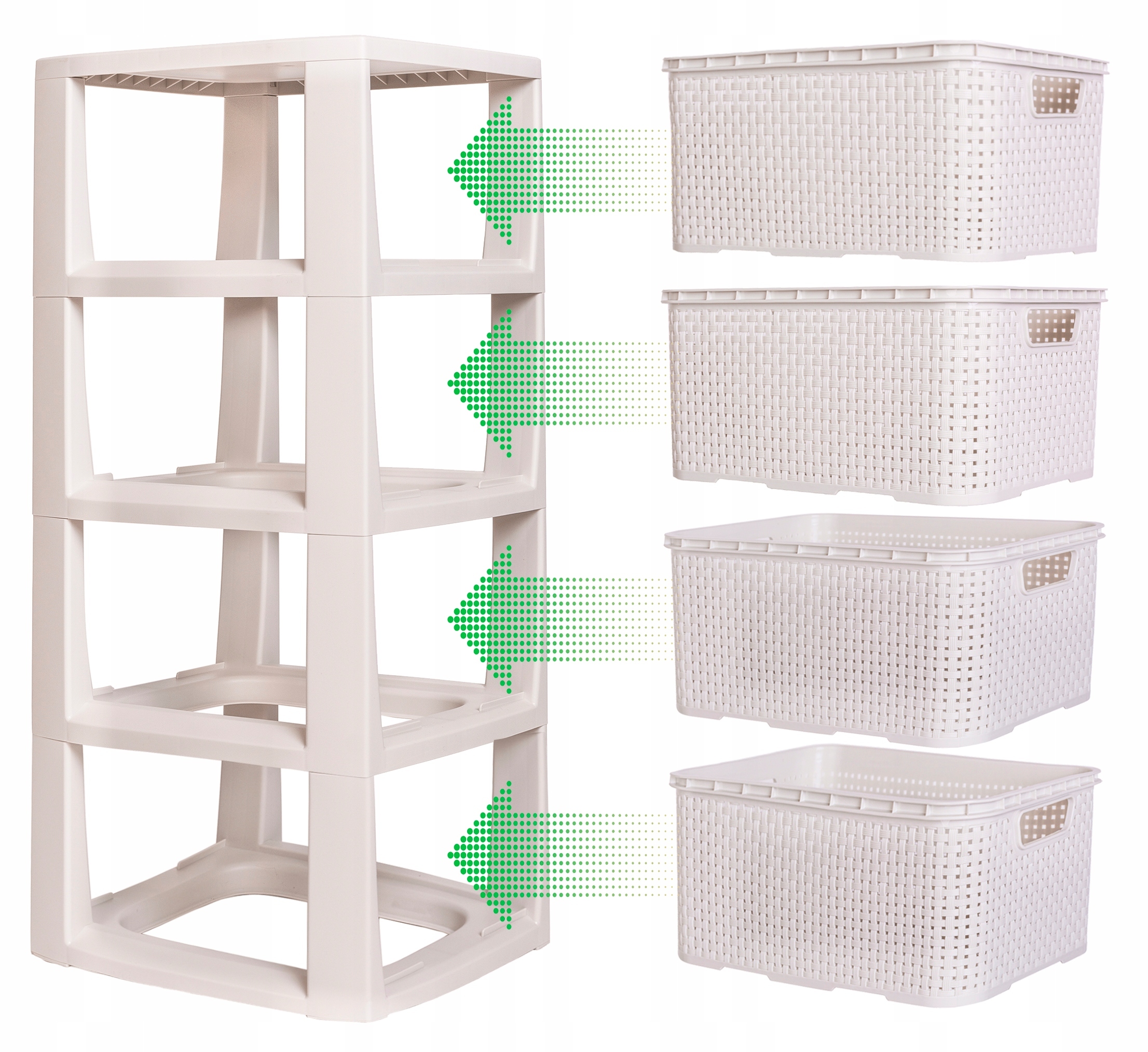 Полиця з ротанга з 4 кошиками Branq - ANTIQUE WHITE