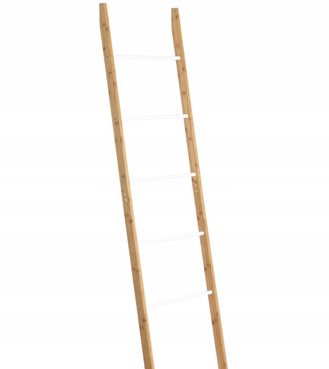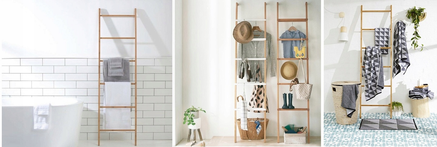 Стелажка-драбина - останній тренд в дизайні інтер'єру. Елегантні, білі полки, з'єднані бамбуковими перекладинами, відмінно підійдуть до стилів вінтаж, ретро та інші. Сучасна форма, оригінальний дизайн і універсальність полички роблять її дуже практичною і корисною на кожен день. На полиці можна розмістити багато речей - книги, квіти чи прикраси.