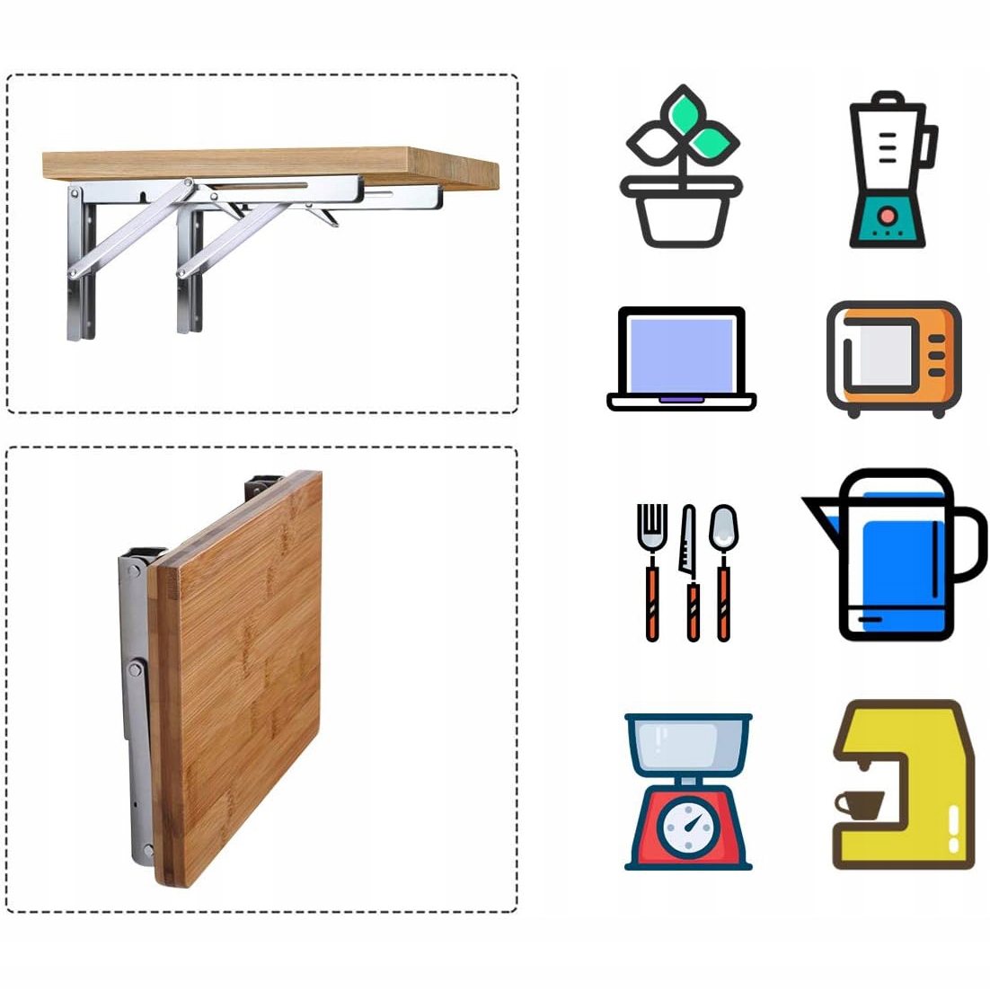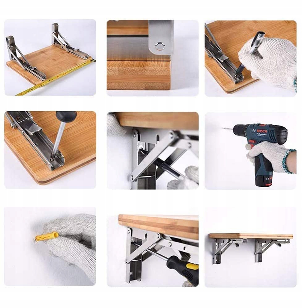 - Складний кронштейн легко зібрати та скласти, дозволяючи вам створити складаний кронштейн для полиці або невеликий складаний настінний стіл для вашого дому чи гаража.