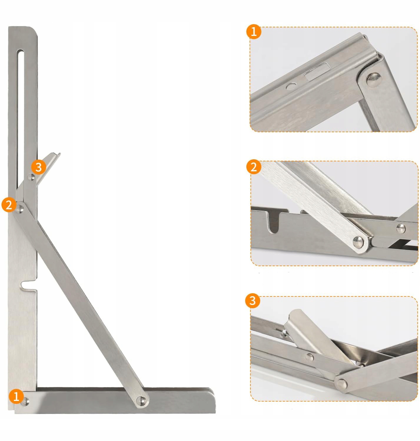 - Цей складаний кронштейн виготовлено з високоякісної нержавіючої сталі.