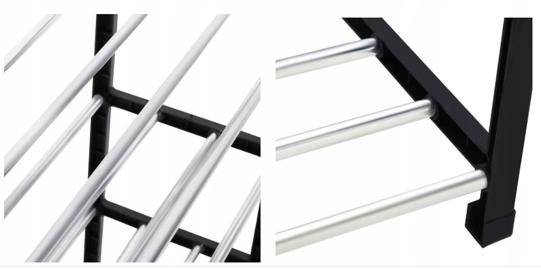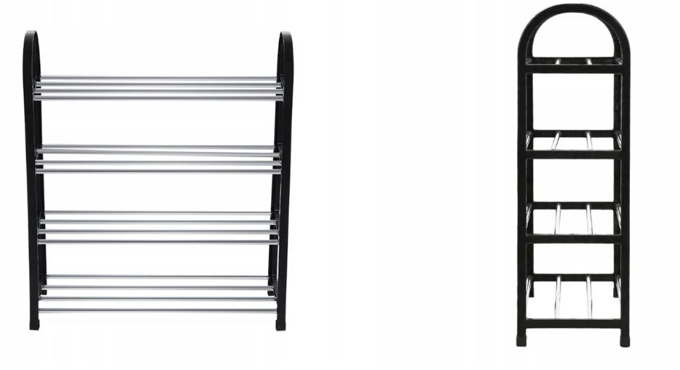 Полиця для взуття з естетичної пластмаси та металевих труб. Конструкція легка і міцна. Універсальний зовнішній вигляд допоможе йому ідеально вписатися в будь-яку квартиру. На чотирьох рівнях можна розмістити 12 пар взуття. Середні труби можна демонтувати залежно від ваших потреб.