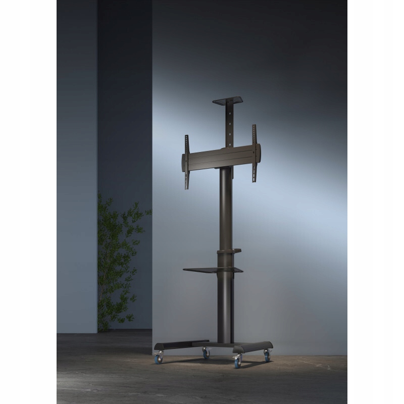 ТВ-таблиця для великого 37 "РК-телевізора- 70" (94-178 см) і максимум 70 кг. Алюмінієва навантажувальна конструкція 125-160 см на колесах, вертикальна ручка +5 °/-12 ° з обертанням 90 °, верхня регульована поверхня для камери 5 кг, полиця 5 кг, управління кабелем, чорна. Установка VESA: 200x200, 300x200, 300x300, 400x200, 400x300, 400x400, 600x400.