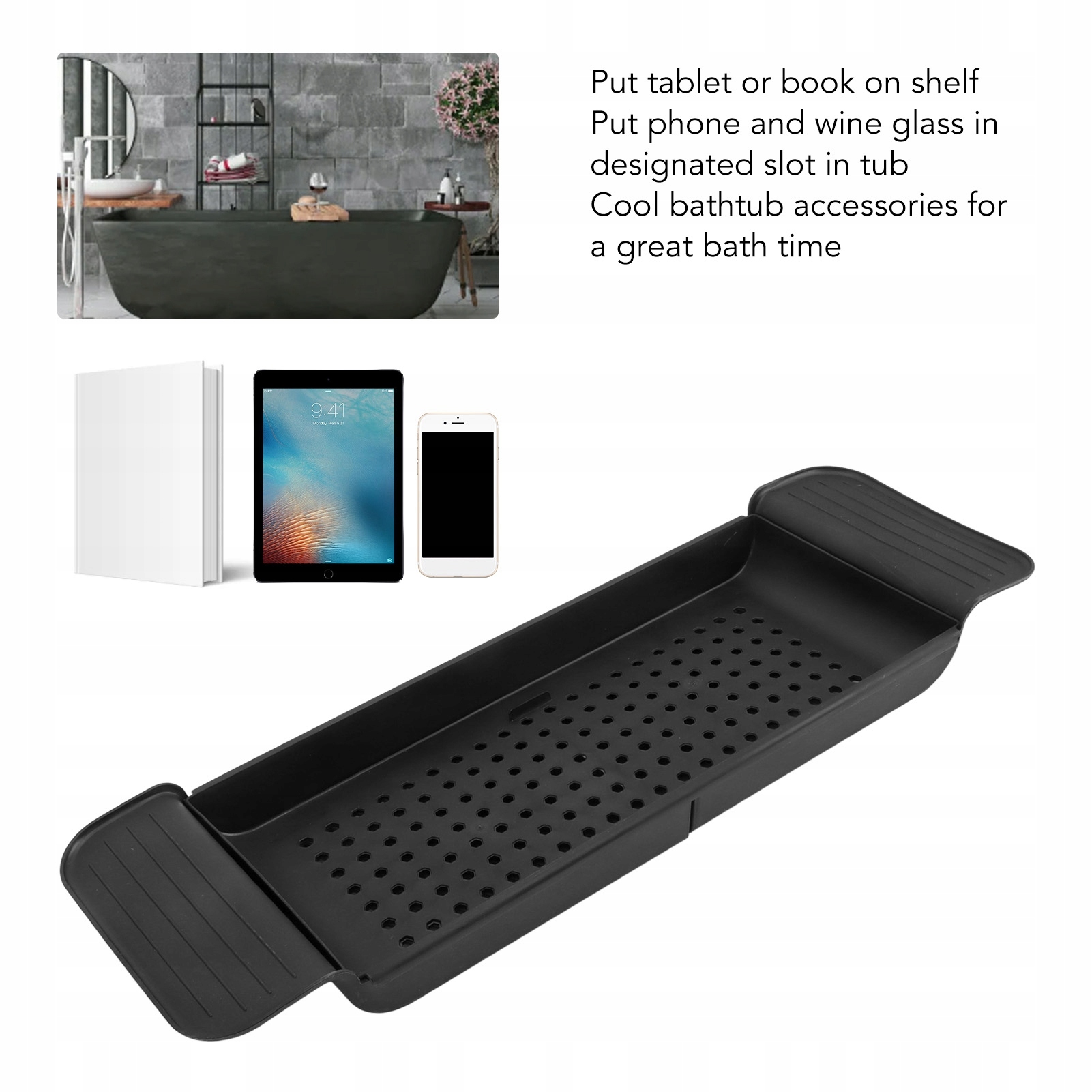 4. Багато функцій: Організатор ванни можна помістити в кухонну раковину для миття фруктів та овочів, посуду та паелів, і його можна розмістити у ванну для зберігання пекла ванни та інших косметики