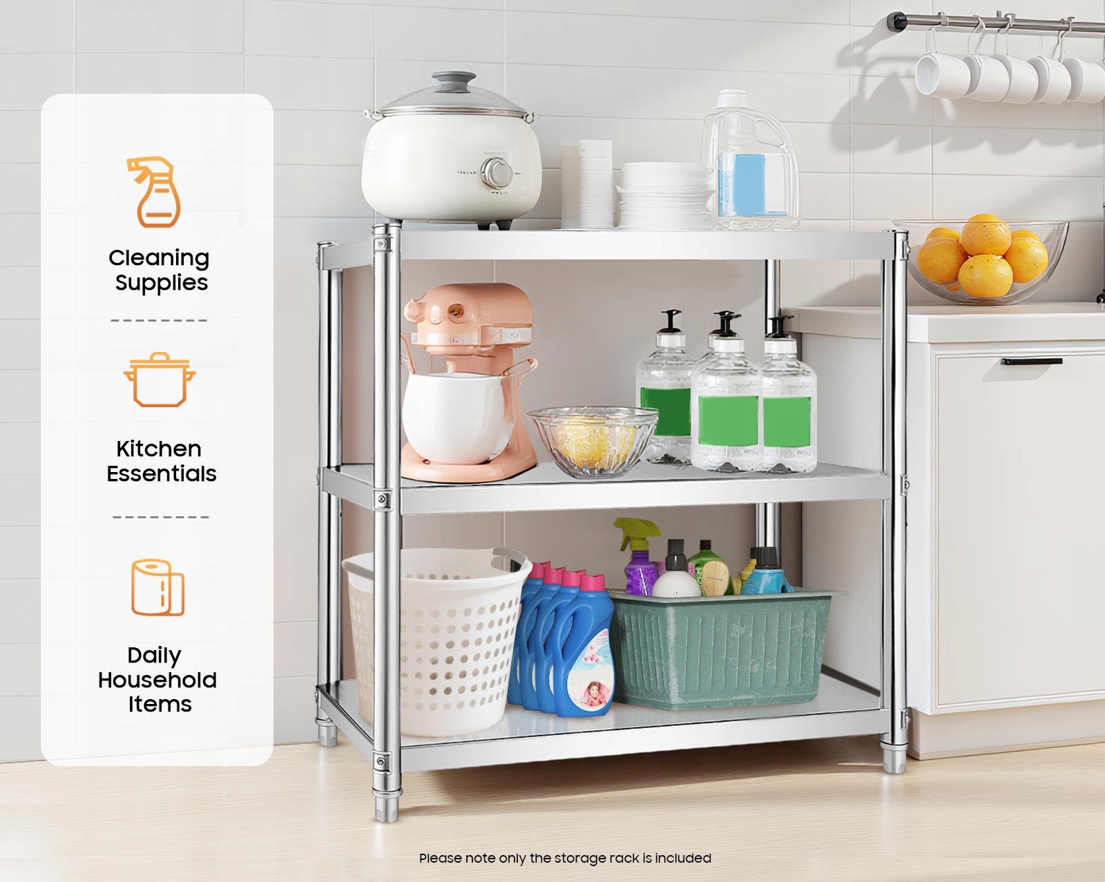 Органайзер для зберігання: Ця 3-ярусна стійка повністю використовує вертикальний простір, дозволяючи акуратно організувати прибирання приладдя, кухонне приладдя першої необхідності або предмети щоденного дому (не включені). Зберігає безлад на стільницях!