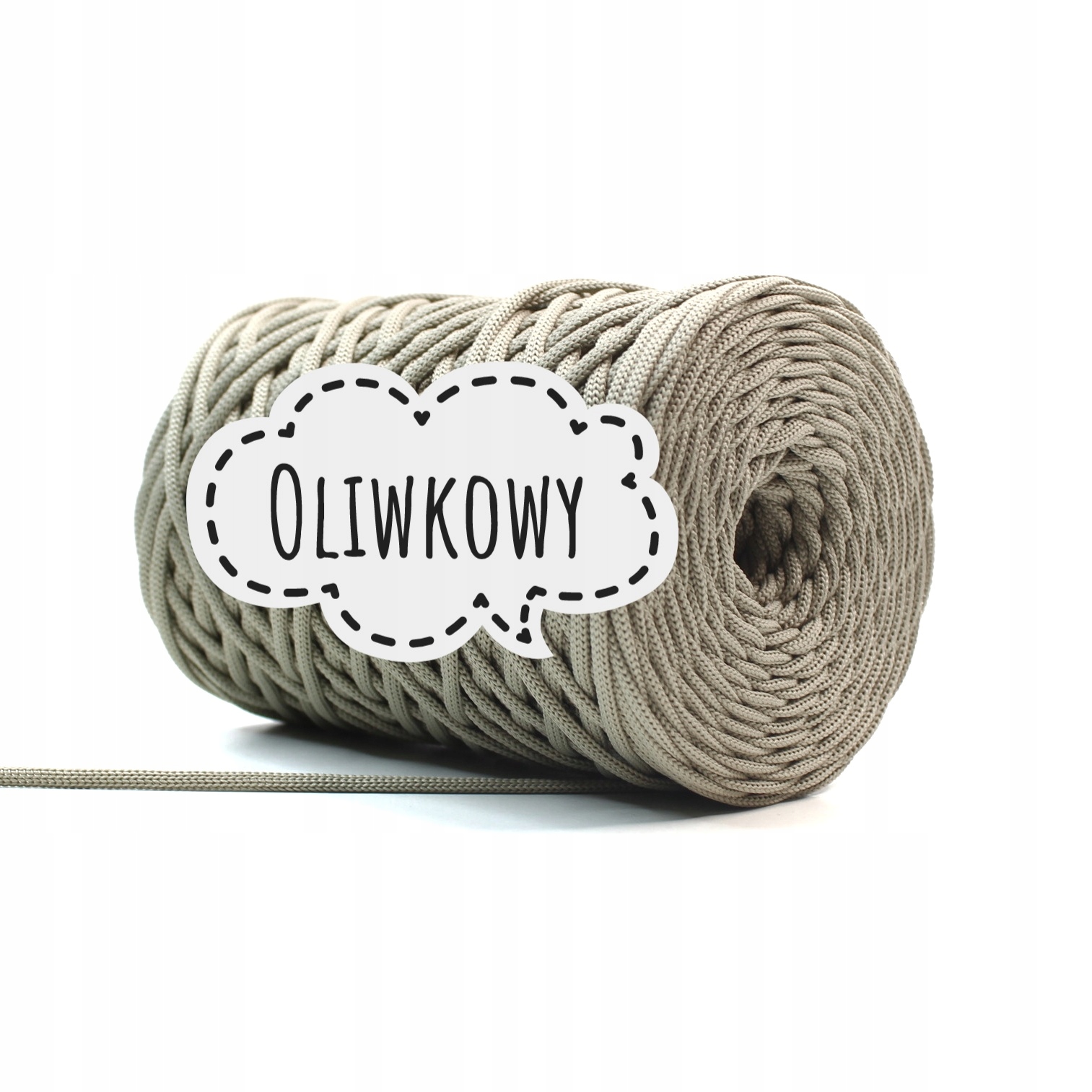 Найкраща плоска поліестерова струна 3MM PIMOtki - OLIVE польського виробництва, яка часто замінює популярні бавовняні струни. Завдяки своїм властивостям він ідеально підходить для сумок, кошиків і килимів. Він легкий, м'який і в'язати гачком приємно. Його найбільші переваги – водонепроникність і непорушність.