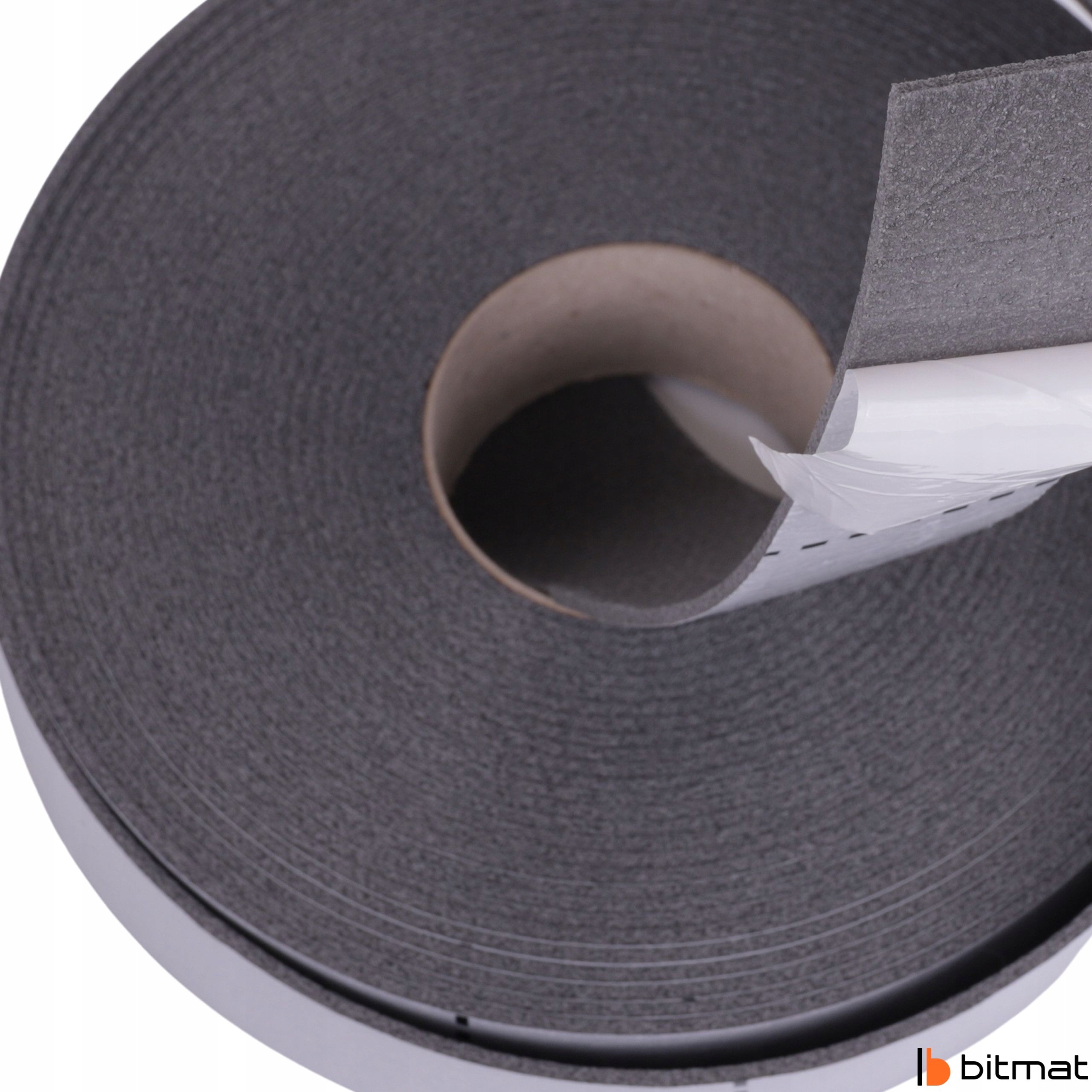Поліетиленова акустична стрічка Bitmat товщиною 3 мм, шириною 50 мм і довжиною 15 м є універсальним рішенням для покращення звукоізоляції та усунення вібрацій. Завдяки самоклеючій поверхні монтаж здійснюється швидко, що робить його ідеальним для будівельних і ремонтних робіт. Стрічка надзвичайно ефективна для звукоізоляції монтажних профілів на стінах, стелі та як компенсаційний шов для стяжок підлоги.