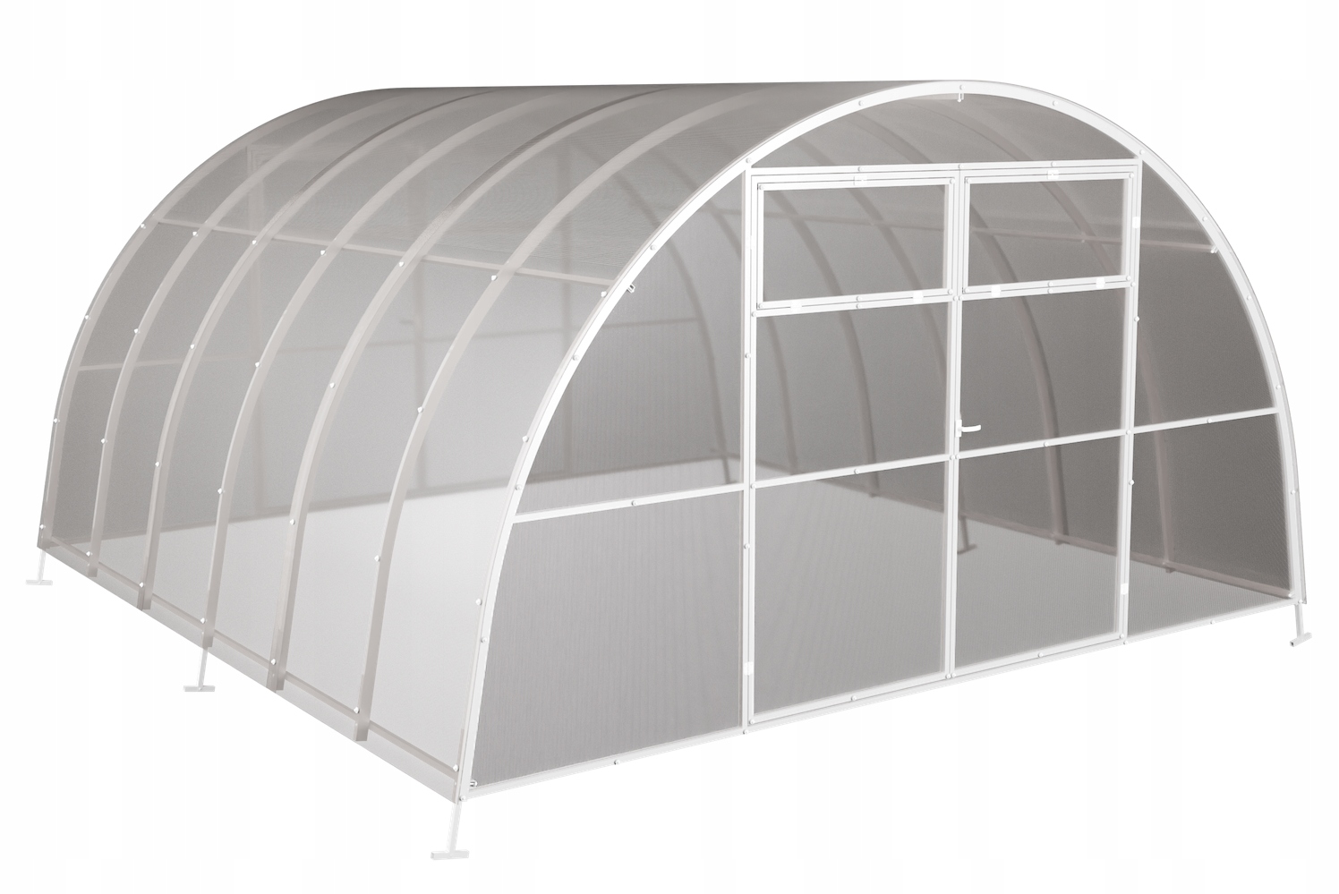 Сучасна та проста в установці конструкція зі сталі 0,8 мм, оцинкована гарячим способом з обох сторін. Арки зроблені з одного елемента - вони зігнуті, фасади зварені. У набір входять Т-подібні анкери для кріплення до землі та набір шурупів. Кришка виготовлена із стійкого полікарбонату, стійкого до УФ-випромінювання та граду.