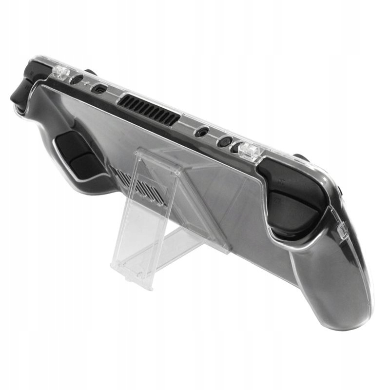 Чохол має вбудовану ніжку, яка функціонує як підставка. У будь-який момент ми можемо розгорнути ніжку та поставити консоль у чохлі на будь-яку рівну поверхню.