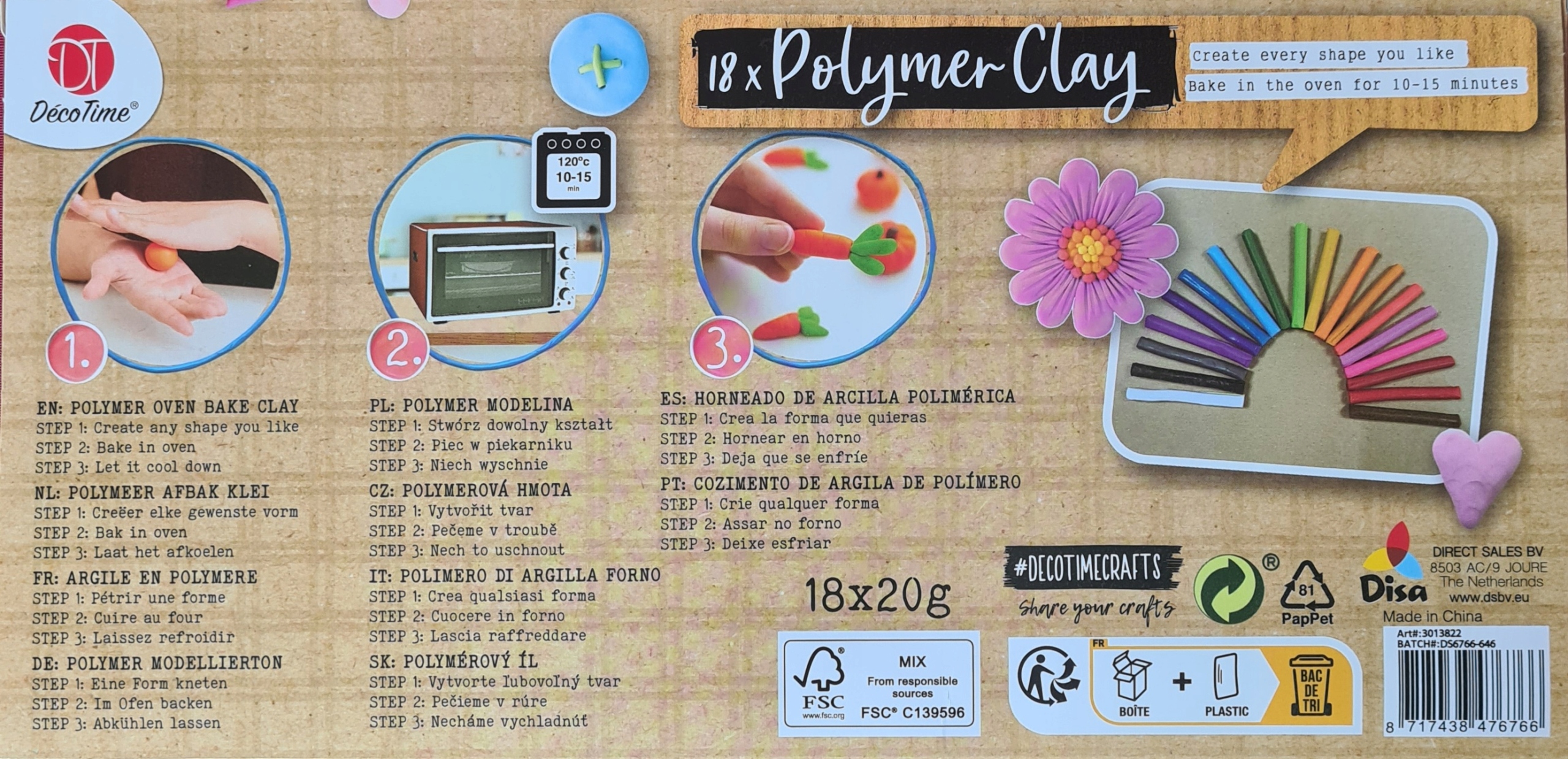 - Набір складається з 18 кольорів полімерної глини