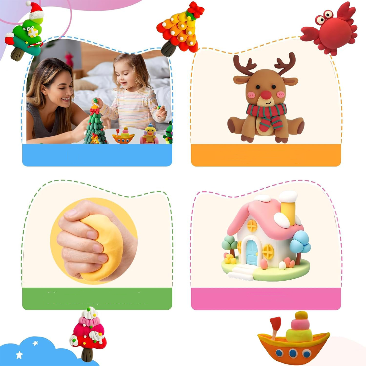 ❤ набір глини включає: Набір полімерної глини містить 50 яскравих кольорів з 5 глинистими інструментами та аксесуарами