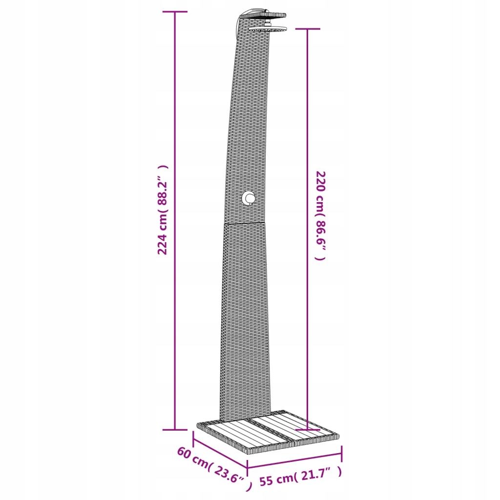 Поліраттенський садовий душ сірий 55x60x224см