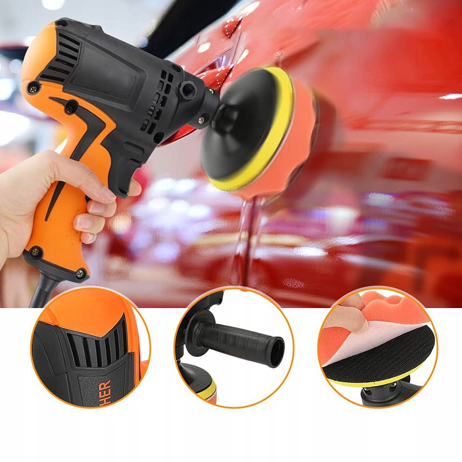 ПОЛІРУВАЛЬНА МАШИНА ДЛЯ АВТОМОБІЛЕЙ РОТАЦІЙНА ШЛІКУВАЛЬНА МАШИНА 980 Вт НАБІР БАГАТО ЕЛЕМЕНТІВ