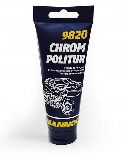 Поліроль для хрому - засіб, призначений для очищення та полірування хромованих елементів деталей автомобіля, мотоцикла та велосипеда. Повертає первісний блиск і усуває тьмяність. Інноваційна композиція захищає поверхні від небезпечних чинників і пошкоджень, створюючи захисний шар.