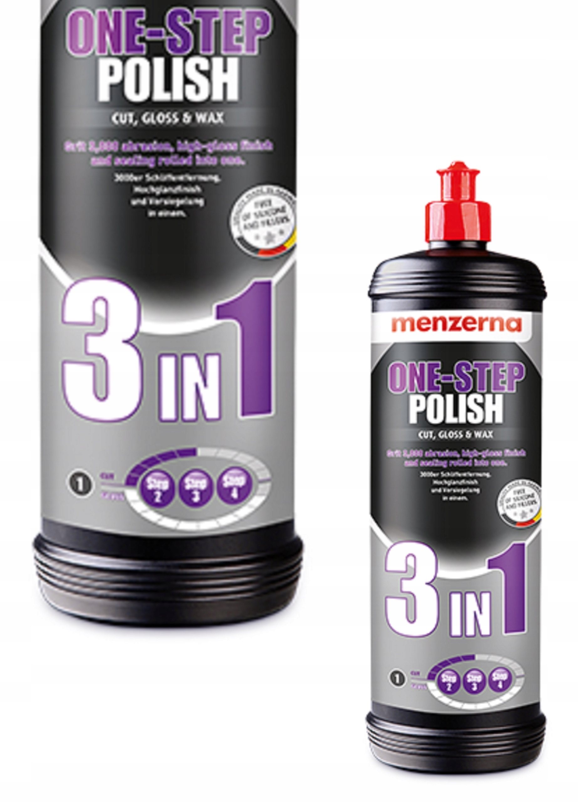 MENZERNA ONE-STEP 3in1 - це проривний продукт ONE -STEP, який чудово усуває подряпини середнього розміру, ідеально фінішує поверхню та забезпечує тривалий захист фарби.