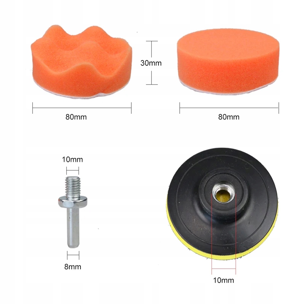 Польські губки доступні в різних кольорах та твердості для задоволення різних потреб. Помаранчеві та білі губки для сирого полірування, жовті губки для помірних полірування темних автомобілів, зелених та червоних губ для помірного полірування легких автомобілів та чорних та синіх губок для точного шліфування. M10 та акумуляторні викрутки, не потрібно купувати додатковий полірувальник.